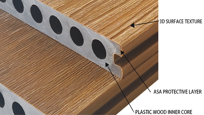 Parannettu kestävyys: Polymeerikerros toimii suojaavana esteenä, mikä tekee terassista kestävämmän, kestävämmän, naarmuja, tahroja ja haalistumista kestävämmän.